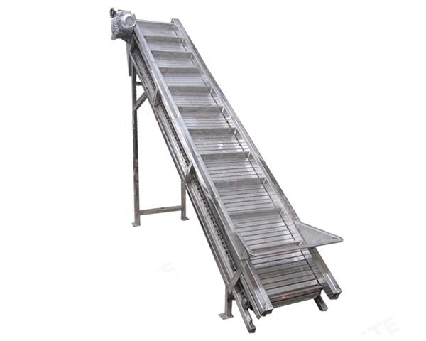 采用不锈钢带档板作为载体,适用于各种食品行业的物料提升输送等,可根据要求设计喷淋和集水装置.